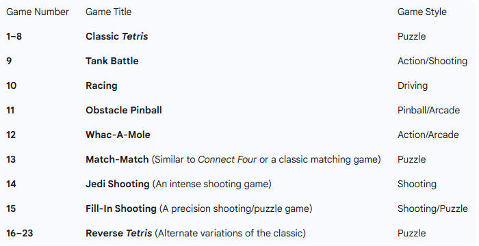Game List (23 Variations)